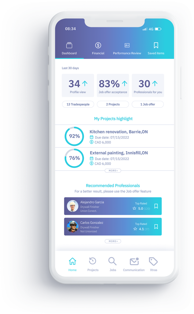Connectus’ search engine helps you find the best ranked professionals available in your area. The system ranks candidates based on qualifications, availability and performance.